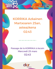 Korrika martxoaren 25ean, asteazkenez, goizeko 02:30etan pasatuko da Azkainen. Herritarrak gau-orduko giro berezian bilduko dira, lekukoa karriketan zehar pasatuz, euskarari sostengua emateko.