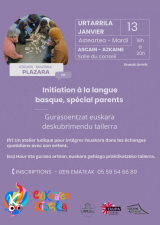 Plazara elkarteak antolaturiko tailer ludiko eta urririk eskaintzen zaie gurasoei. Jokoen bidez, egoera eta tresna konkretuen bidez, tailer horrek gako erresak emanen dizkizu zure haurrarekin eguneroko harremanetan euskara baliatzeko.