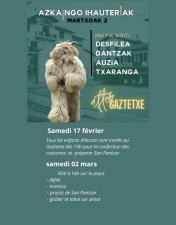 Azkaingo Ihauteriak martxoaren 2an 16:00etan plazan.Egitarauan :DesfileaDantzakAuziaTaxarangaKrakada
