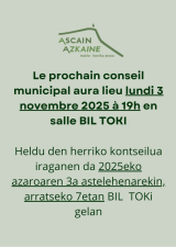 Heldu den herriko kontseiluko bilkura 2025eko azaroaren 3an, astelehenarekin iraganen da, arratseko 7etan Bil Toki gelan.