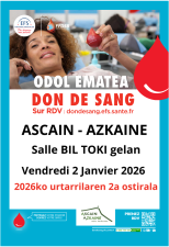 Odol emaitza iraganen da Bil Toki gelan urtarrilaren 2an, ostiralarekin, 15:00etatik 19:00etara