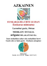 EUSKARALDIA URTE GUZIAN AZKAINEN larunbat guziz 10etan Merkatu estalia arigune bilakatuko da.
