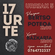 Bertso Poteo 11:00etan plazan, 13:00etan bazkaria eta kontzertuak Xirion paletan eta bukatzeko Dj Jow Gaztetxean.