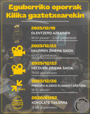 Eguberriko oporretan, Kilika gaztetxeak egitarau berezia prestatu du Azkainen, adin guzientzat. Tradizioa, zinema, elkartasuna eta goxotasuna uztartuko dira urte bukaeran.
