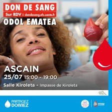 Odol ematea iraganen da Azkainen ostiralean uztailaren 25ean, arratsaldeko 3etatik arratseko 7ak arte Biltoki gelan, KIROLETA gunean.