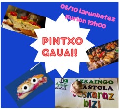 Pintxo Gaua urriaren 5an xurion 19:00etatik goiti