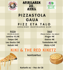 Apirilaren 20an, Azkaingo plazan, pizza / talo eta kantaldi gaualdia Azkaingo Ikastolak antolaturik.