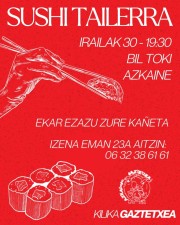 Sushi zale? Zato irailaren 30ean, 19:30etan Bil Tokira eta ikasi sushi goxoak egiten tailer batean!